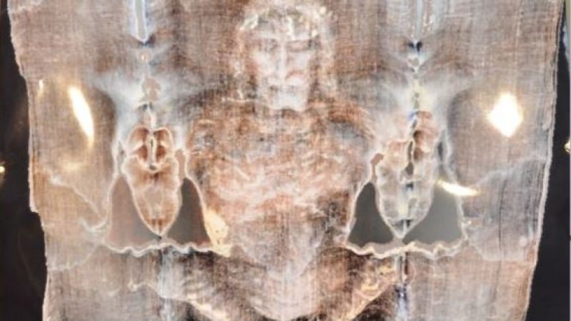 Close examination of the Shroud of Turin reveals something very interesting; at some time the Shroud of Turin was torn into "two cloths!" (See photos below.) The first photo shows a corner and one edge of the cloth, the second is an x-ray of the corner of cloth. Both photos show a seam, where the cloth was sown back together: showing that about a 3 inch wide strip of linen was torn (full length) from one edge of this cloth; thus making "two cloths." (So the Shroud of Turn doesn't contradict the Bible on this point; but actually reconciles John 19:40 with the other 3 Gospel accounts.)